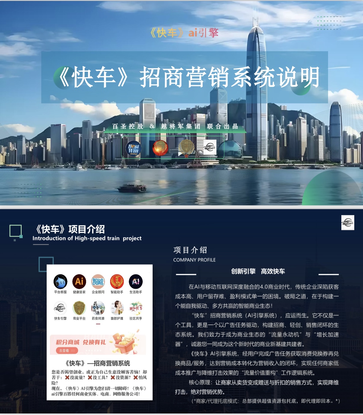 您是否渴望创业,或正为生意没顾客而苦恼,却苦于没流量、没工具、没资源、怕风险?《快车》AI引擎为您扫清一切障碍!我们独创“商家/代理托底模式”,总部提供超值资源包,确保“即代理即回本”,让您零风险起步!