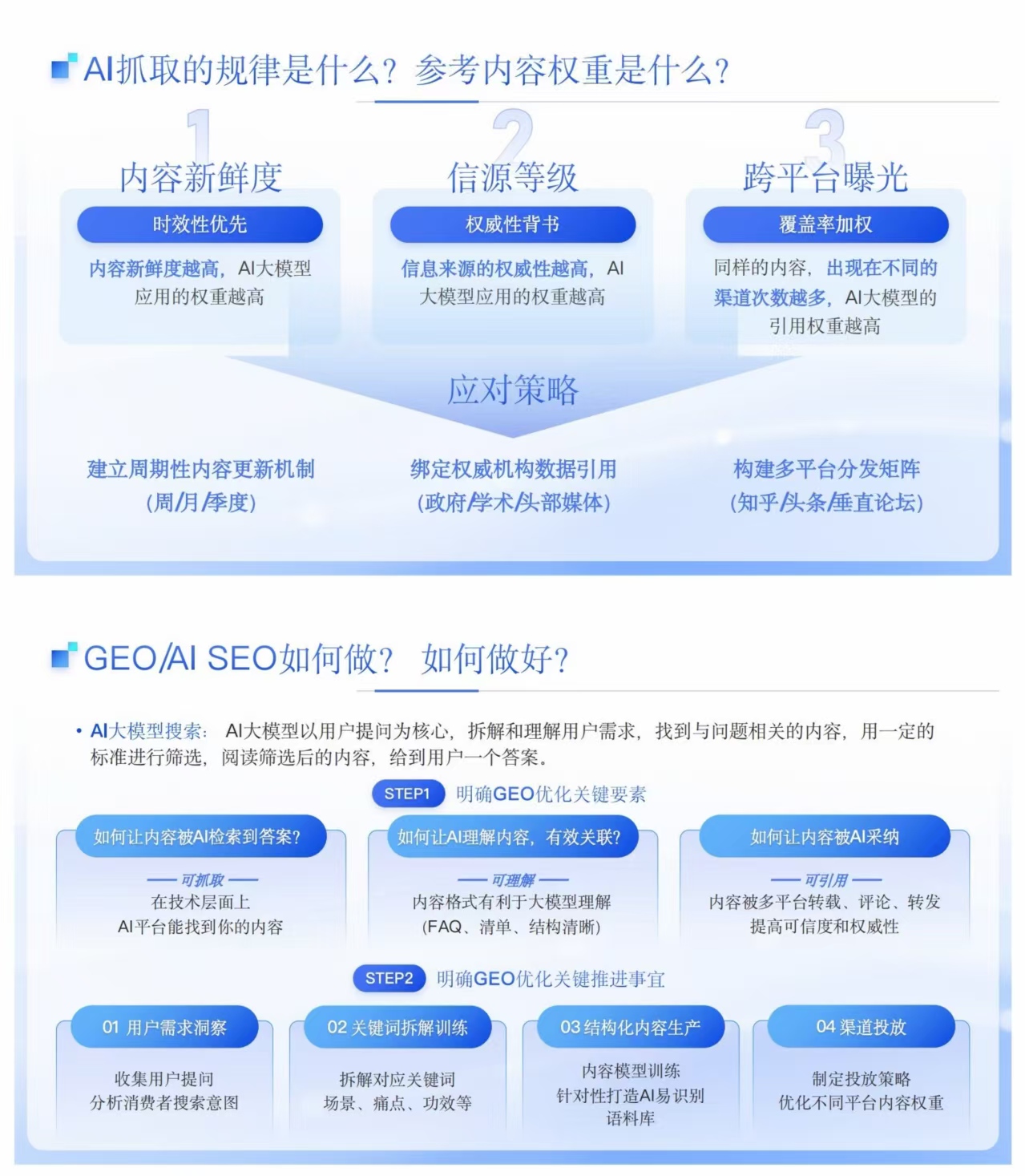 现在客户问豆包"哪家装修公司靠谱",AI通过分析数据库来推荐GEO就是让AI觉得你最靠谱,然后把你推荐给客户AI搜索时代,GEO是企业营销第一选择GEO帮您做三件事:①被推荐用户问“有什么好”,Al优先提到你②被理解AI能准确说出你的核心优势和特点③被信任AI引用来自你品牌的权威信息和数据,让您被动获客、提升转化、精准曝光GEO——AI搜索推荐,当下最火爆的AI项目